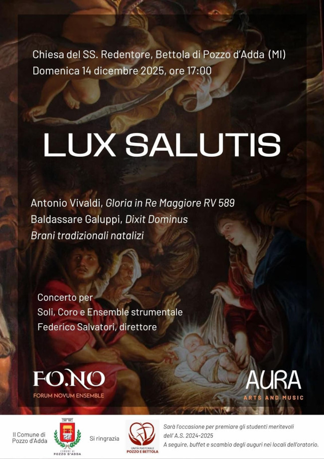 L'Assessorato alla Cultura organizza il Concerto di auguri natalizi, a cura di Forum Novum Ensemble - Aura Arts and Music: