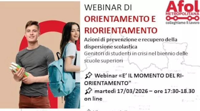 Azioni di prevenzione e recupero della dispersione scolastica 06/03/2026 Webinar di orientamento e riorientamento Continua a leggere