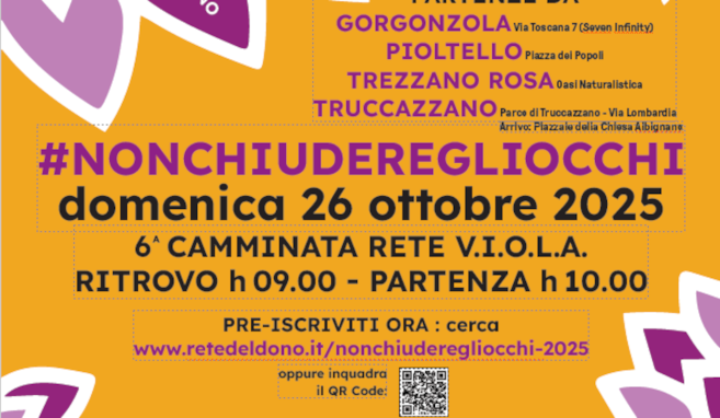 Testo completo title Domenica 26 ottobre si terrà la 6° camminata organizzata dalla Rete Antiviolenza V.i.o.l.a., con partenza da diversi Comuni. Tutti i dettagli sono nell’allegato volantino.