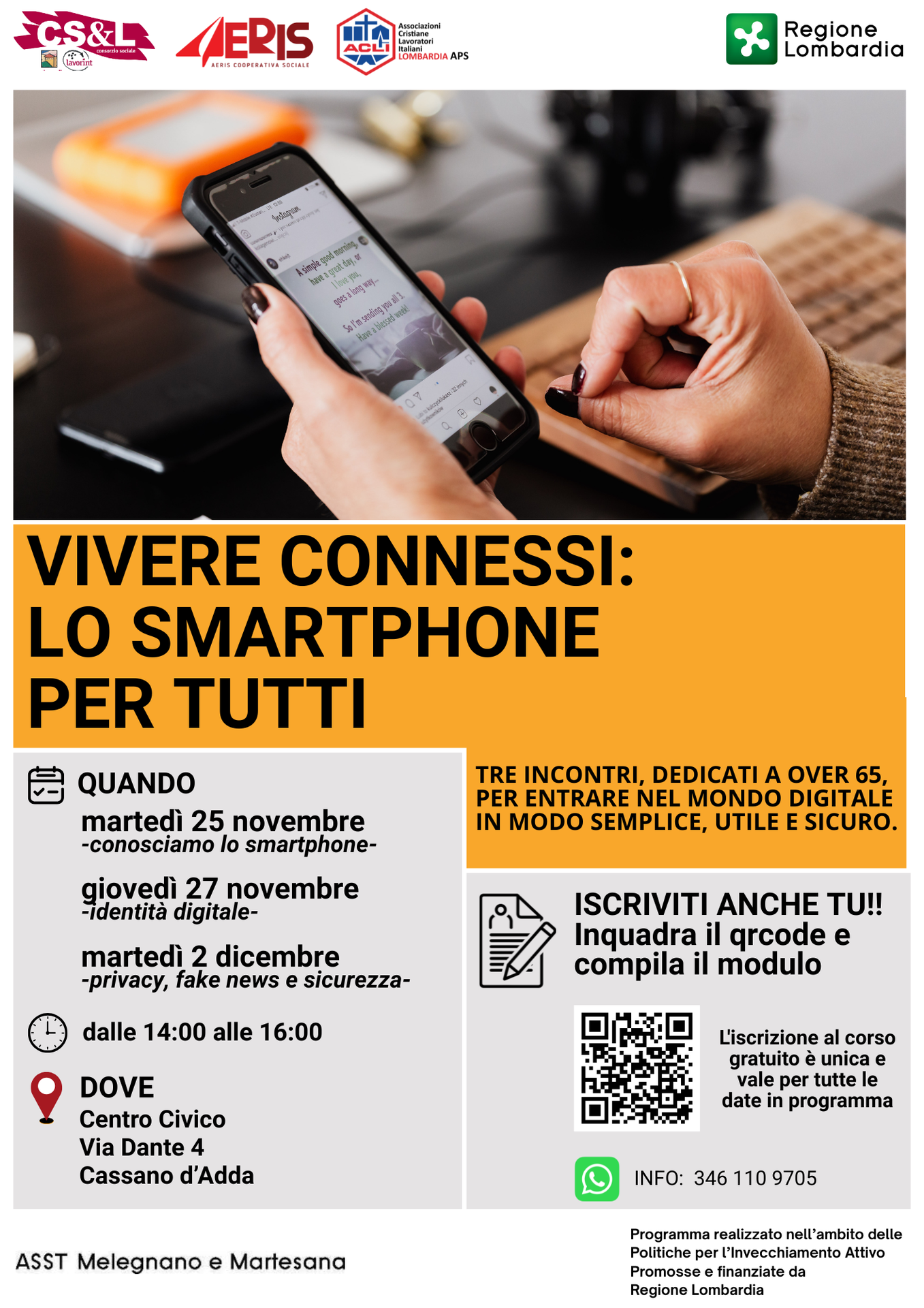 In un’epoca in cui la connessione digitale è sempre più parte della vita quotidiana, nasce “Vivere Connessi: lo smartphone per tutti”, un ciclo di tre incontri gratuiti dedicati alle persone over 65, con l’obiettivo di accompagnarle all’uso consapevole e sicuro delle tecnologie.