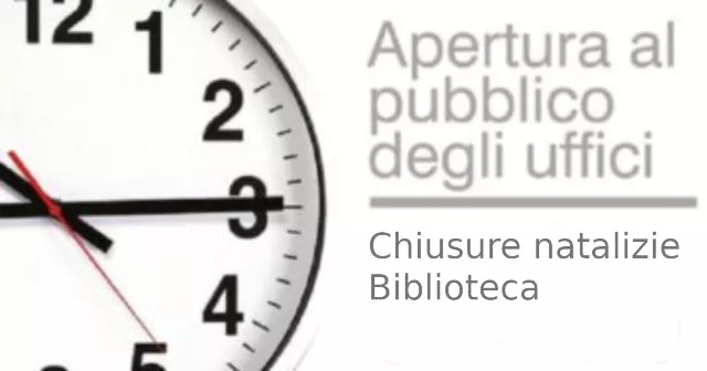 Pubblicata il - 19/12/2025 Chiusura natalizia biblioteca dal 24 al 31 dicembre 2025 Chiusura natalizia dal 24 al 31 dicembre 2025