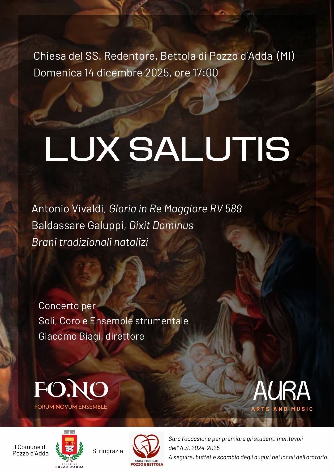 L'Assessorato alla Cultura organizza il Concerto di auguri natalizi, a cura di Forum Novum Ensemble - Aura Arts and Music:
